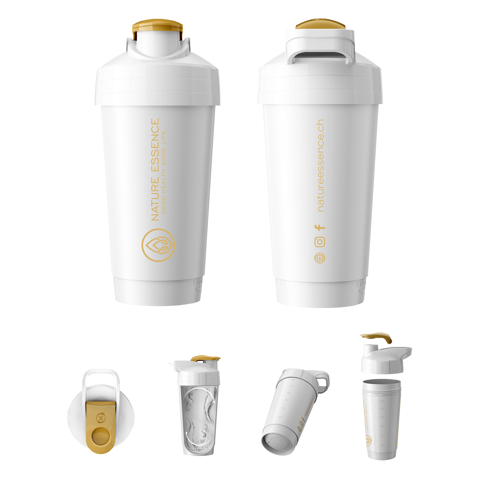 - Polerowane wnętrze shakera i zaokrąglone dno (Circle Technology) gwarantuje idealne wymieszanie zawartości bez użycia sitka, kulku itp.